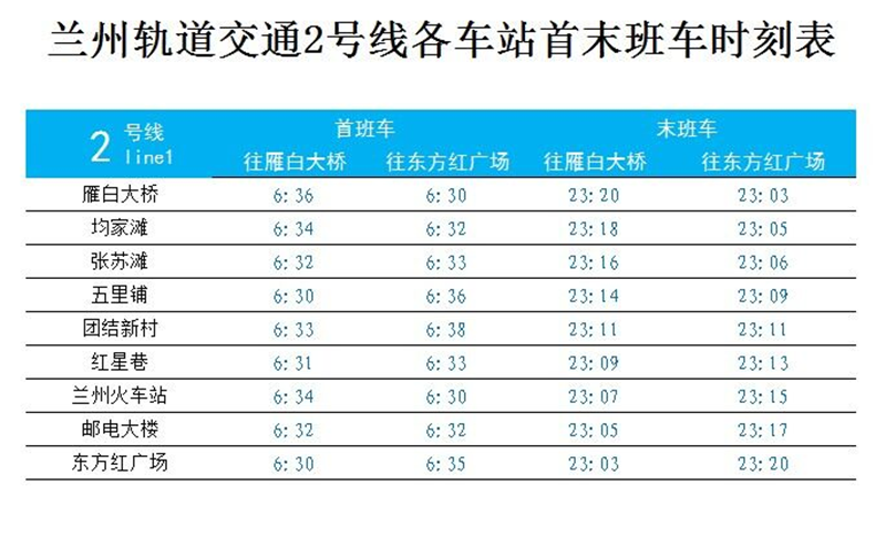 另?yè)?jù)了解,蘭州軌道交通2號(hào)線(xiàn)一期工程初期運(yùn)營(yíng)時(shí)間為6:30至23:20,每天運(yùn)營(yíng)服務(wù)16小時(shí)50分鐘,運(yùn)行列車(chē)最小行車(chē)間隔6分20秒,最大行車(chē)間隔8分40秒,全線(xiàn)單程運(yùn)行平均時(shí)間約15分鐘53秒。