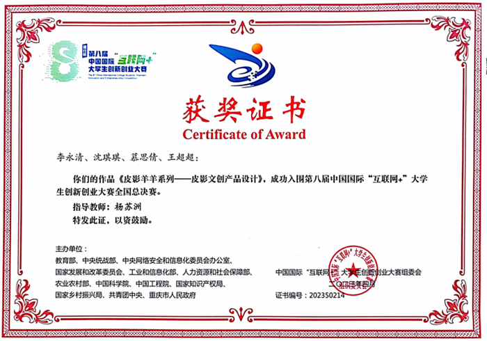 中國甘肅網(wǎng)7月12日訊(西北角·中國甘肅網(wǎng)記者 余守萱 通訊員 郭海霞)近日,從中國國際“互聯(lián)網(wǎng)+”大學(xué)生創(chuàng)新創(chuàng)業(yè)大賽組委會(huì)傳出喜訊,由環(huán)縣第二中學(xué)楊蘇洲老師指導(dǎo),學(xué)生李永清、沈琪琪、慕思倩、王超超四人共同創(chuàng)作完成的作品《皮影羊羊系列——皮影文創(chuàng)產(chǎn)品設(shè)計(jì)》,成功入圍第八屆中國國際“互聯(lián)網(wǎng)+”大學(xué)生創(chuàng)新創(chuàng)業(yè)大賽全國總決賽。