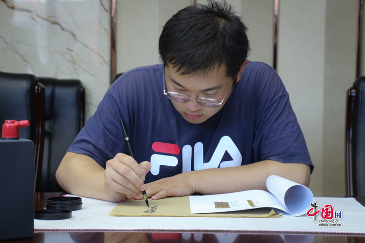 7月31日,蘭州大學(xué)古文字學(xué)強(qiáng)基計(jì)劃同學(xué)正在臨摹簡牘。中國網(wǎng)記者 鄭偉 攝