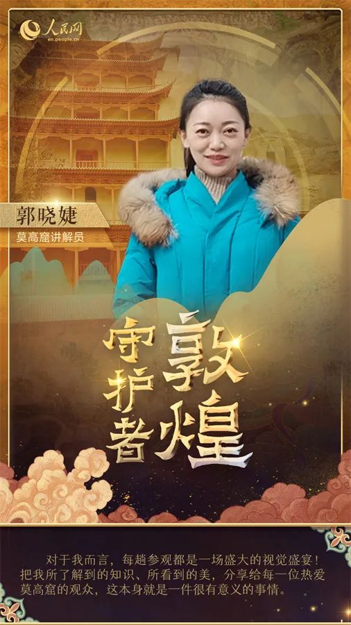 2008年大學(xué)畢業(yè)后,郭曉婕決定回到故鄉(xiāng)敦煌,選擇在莫高窟當(dāng)導(dǎo)游。對(duì)于郭曉婕來(lái)說(shuō),每一次帶領(lǐng)游客參觀莫高窟,都是一場(chǎng)盛大的視覺(jué)盛宴。通過(guò)精美的壁畫和雕塑,現(xiàn)代人可以一窺古老的絲綢之路,更好地了解燦爛的敦煌文化。