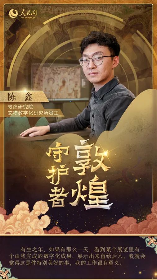 在敦煌研究院文物數(shù)字化研究所,工作人員們正開展數(shù)字化項(xiàng)目,將莫高窟的壁畫和雕塑變成數(shù)字化產(chǎn)品。陳鑫就是其中一員,在文物數(shù)字化研究所工作的四年,他負(fù)責(zé)壁畫的數(shù)字化處理。“我們的目標(biāo)是利用現(xiàn)代技術(shù)保護(hù)這些文物,讓它們活起來(lái)并傳承下去,讓我們的后代能夠看到它們。”