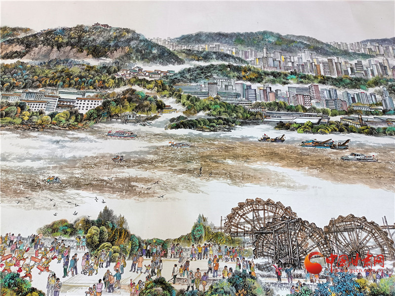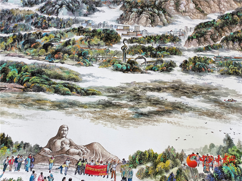 李建春說,畫面上共有500多個個性鮮明的人物,蘭州是多民族兄弟姐妹共同的家園,黃河是母親河,從這個角度,他描繪了黃河兒女的形象,大家生活在蘭州,也熱愛著蘭州。