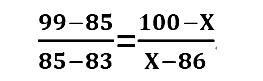 舉例說明:假如小王的地理科目原始成績?yōu)?5分,在當(dāng)年全省參加該科目考試的考生中位于前2.5%,根據(jù)上表,該成績位列A等級,該等級的賦分區(qū)間為100-86分。根據(jù)考生原始成績的分布,可知A等級的原始分?jǐn)?shù)區(qū)間(假設(shè)為99-83分),那么小王地理科目的賦分成績(X)可通過如下公式計(jì)算: