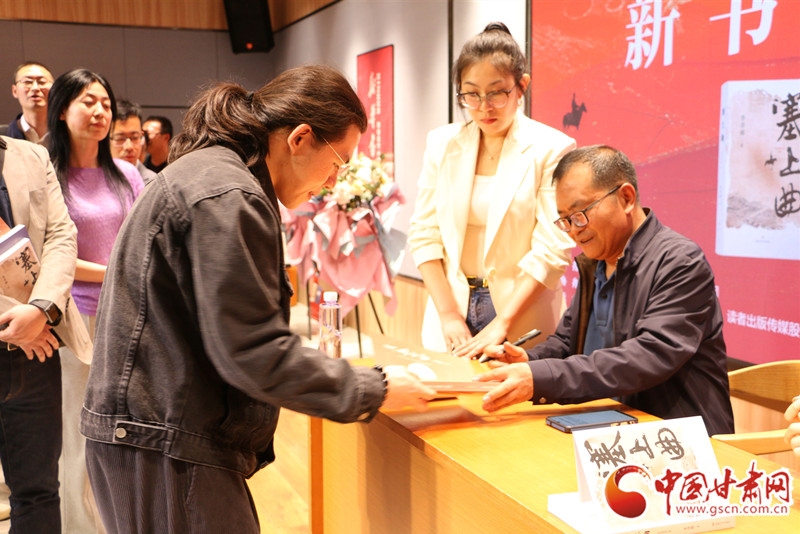“七年來(lái),‘塞上三部曲’等6部精品力作由敦煌文藝出版社出版,這既是學(xué)輝與‘讀者’的特殊緣分,也是讀者集團(tuán)致力于培育優(yōu)質(zhì)作家資源,持續(xù)打造高質(zhì)量出版物的重要成果。”梁朝陽(yáng)在致辭中說(shuō),讀者出版集團(tuán)堅(jiān)持以精品鋪路,努力推出更多優(yōu)秀作品,為建設(shè)文化強(qiáng)省、奮力譜寫中國(guó)式現(xiàn)代化甘肅篇章作出更大貢獻(xiàn)。