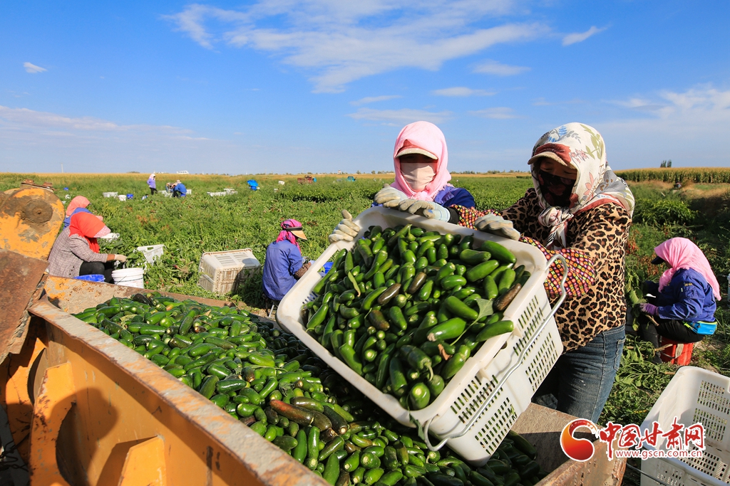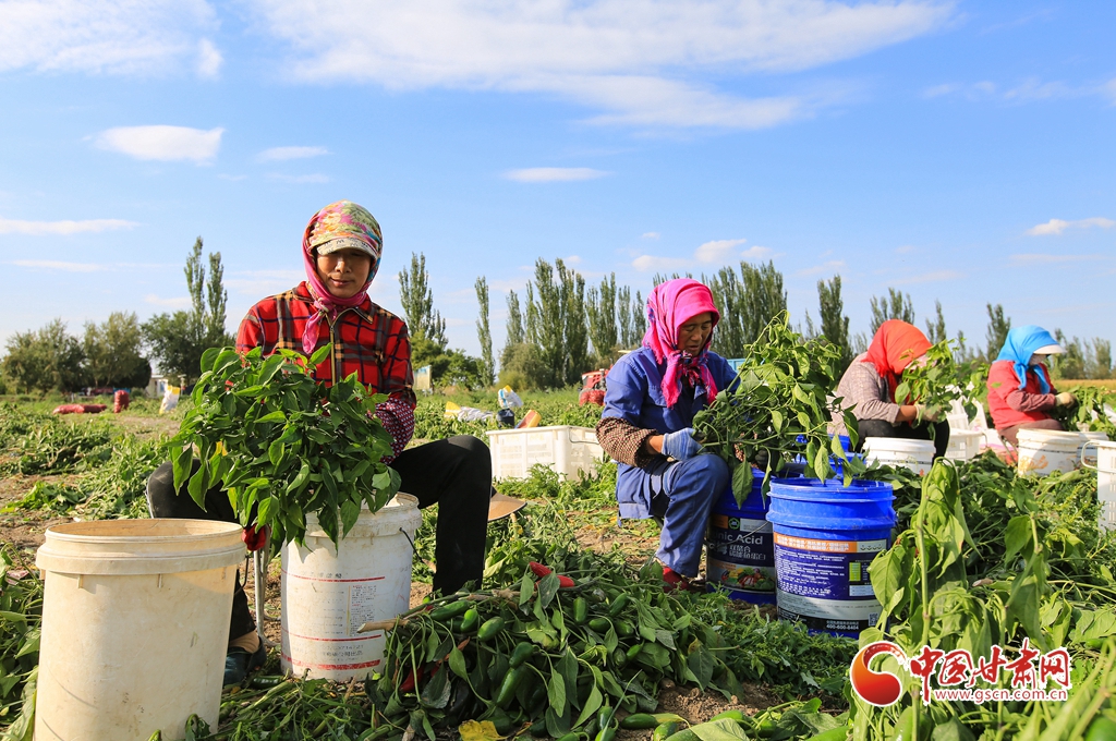 9月1日,嘉峪關市新城鎮(zhèn)長城村一農民專業(yè)合作社種植的子彈頭辣椒喜獲豐收,種植戶搶抓農時采摘,農用機械車輛穿梭于田間地頭,鄉(xiāng)村田野呈現(xiàn)出一派繁忙的景象。