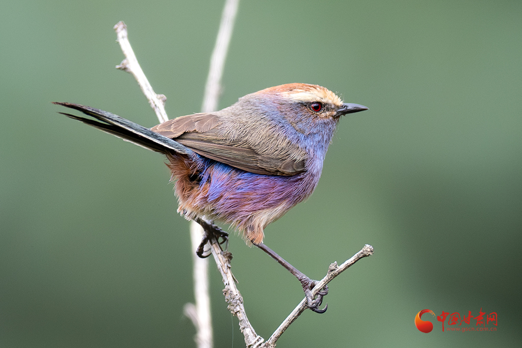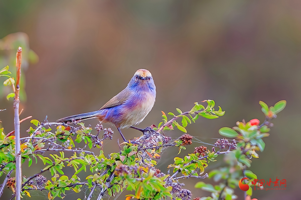 花彩雀鶯是一種毛茸茸偏紫色的雀鶯。頂冠棕色,眉紋白,尾長,羽毛松軟。前額有一寬闊的眉紋淡黃色,頭頂栗色或棕紅色,有的具紫藍色光澤,背灰色,腰和尾上覆羽輝紫藍色,飛羽灰褐色。種群數(shù)量趨勢穩(wěn)定,因此被評價為無生存危機的物種。