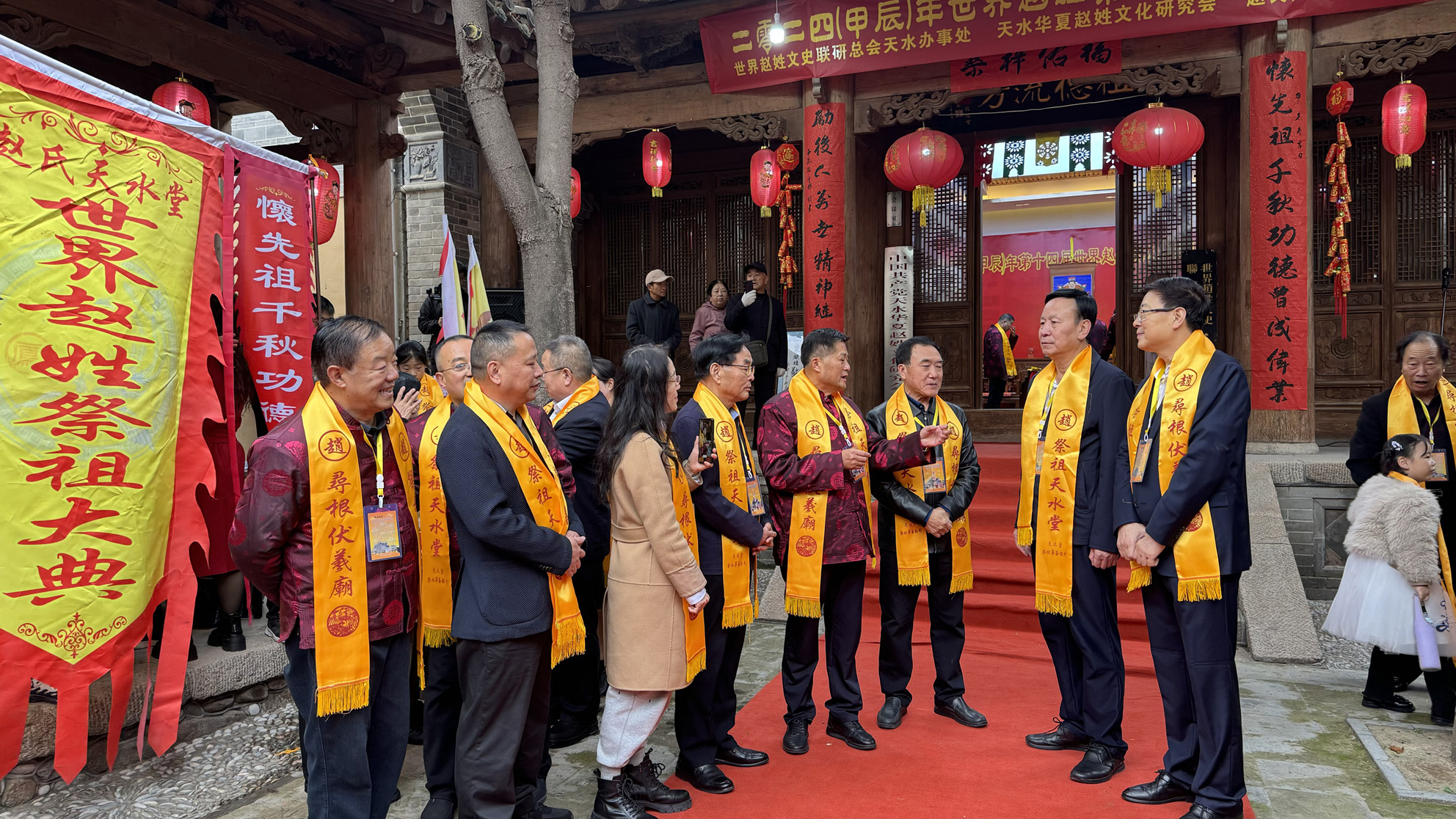11月10日上午,由世界趙姓文史聯(lián)研總會天水辦事處、天水華夏趙姓文化研究會承辦的2024(甲辰)年世界趙姓祭祖大典在秦州區(qū)解放路趙氏天水堂舉行。來自世界各地的趙氏后裔代表相聚天水,首先在伏羲廟拜謁中華人文始祖伏羲,隨后于趙氏天水堂舉行了祭祖大會活動,尋親祭祖,祈福納祥。