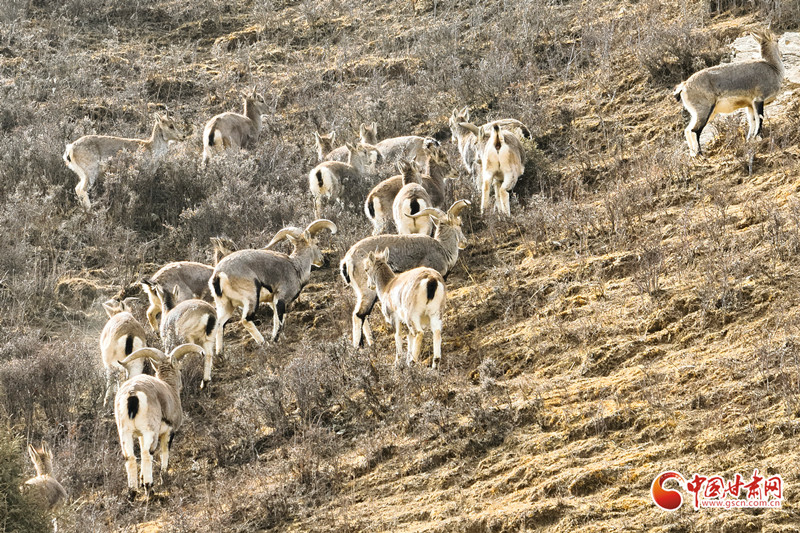 近日,民樂(lè)縣大河口自然保護(hù)站扁都口資源管護(hù)站人員于高海拔區(qū)域日常巡護(hù)時(shí),邂逅一大群巖羊在山坡覓食、奔跑的珍貴場(chǎng)景,巖羊數(shù)量約50只。