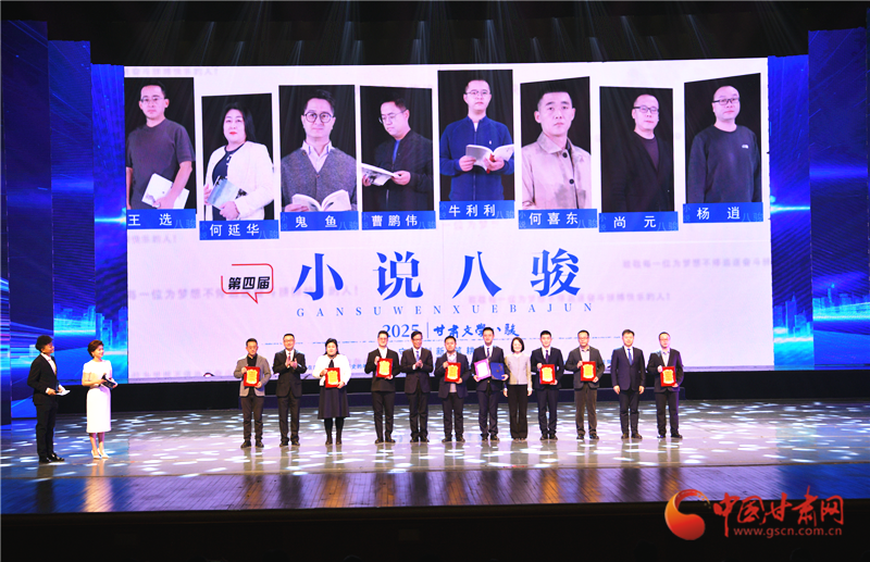 頒獎(jiǎng)環(huán)節(jié),牛利利、王選、何延華、何喜東、尚元、楊逍、鬼魚、曹鵬偉等8位作家當(dāng)選“第四屆甘肅小說八駿”;阿天、王悅、劉山、憶今、李越、趙琳、花盛、諾布朗杰等8位詩人當(dāng)選“第五屆甘肅詩歌八駿”。其中,劉山、趙琳、花盛3人繼第四屆詩歌八駿后再度蟬聯(lián),彰顯出持續(xù)旺盛的創(chuàng)作力。