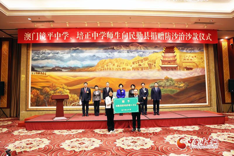 中國甘肅網(wǎng)1月27日訊(西北角·中國甘肅網(wǎng)記者 張慧雅 宋芳科 孫珩力 黃宛悠)1月27日,澳門鏡平中學(xué)與培正中學(xué)師生向甘肅民勤縣捐贈防沙治沙款儀式在蘭州舉行。此次兩所學(xué)校聯(lián)合捐贈防沙治沙款共20.1萬元,延續(xù)了隴澳共護(hù)綠洲的愛心接力。