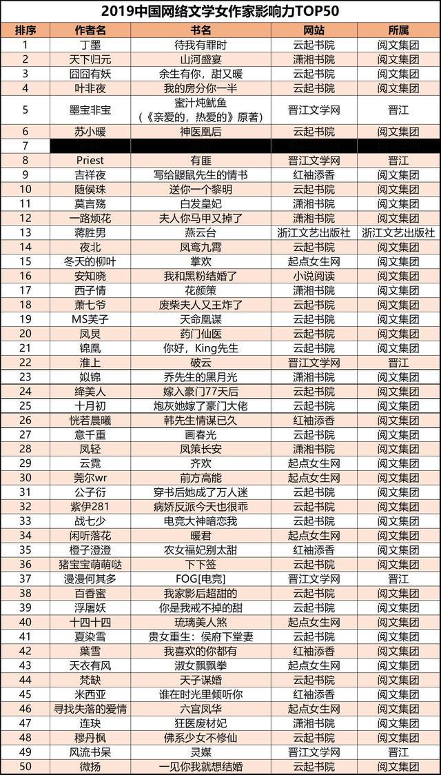中國青年報客戶端訊(中青報·中青網記者 沈杰群)日前,《2019年中國網絡作家影響力榜》正式發(fā)布,通過對作家的作品影響力、平臺影響力及新媒體影響力多維度的分析與論證,綜合衡量出作家影響力,評選出國內最具影響力男作家TOP50及女作家TOP50。