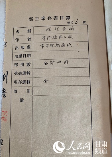 “力學(xué)廬藏書”為何保存在天水市?1937年抗日戰(zhàn)爭全面爆發(fā),日機(jī)輪番轟炸西安等城市,主政甘肅、陜西6年間自己節(jié)儉日常生活開支所搜購、珍藏的大批珍貴圖書怎樣才能免于戰(zhàn)火?邵力子先生十分焦慮。民國年間著名人士鄧寶珊、馮國瑞多次向邵力子先生“游說”,說明他們的家鄉(xiāng)天水市人文氣息濃厚、又地處西北一隅,屬抗戰(zhàn)后方,藏書環(huán)境較為安全,希望“以之捐贈天水,建館而公諸世”。經(jīng)過慎重考慮,邵力子先生決定將自己在西安的全部“力學(xué)廬藏書”運(yùn)往天水,并由好友、著名學(xué)者馮國瑞負(fù)責(zé)接收、轉(zhuǎn)運(yùn)。在那戰(zhàn)火紛飛的年代,要把幾十箱、數(shù)萬冊藏書從西安運(yùn)到天水,確非易事。李東暉說,在當(dāng)時陜西省政府主席及秘書長、天水縣長及教育局長等人的協(xié)助下,歷經(jīng)周折、分三次才將這批珍藏轉(zhuǎn)運(yùn)成功,當(dāng)時雇用鹽商的牲口、沿途由鄧寶珊將軍派部隊(duì)護(hù)送。