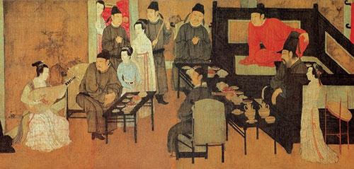 但據(jù)考證,到了北宋,合餐制開(kāi)始出現(xiàn),最關(guān)鍵的原因是北宋飲食文化的商業(yè)化。食材多元、烹飪樣式增多,極大地豐富了宋代餐桌的菜色,教坊酒樓、勾欄瓦舍等公共飲食空間的出現(xiàn),是中國(guó)民眾飲食文化的一次重要改革。