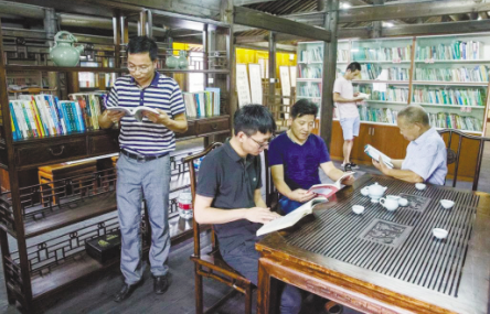 數(shù)字化建設(shè)之外,還有許多農(nóng)家書屋加速迭代升級,農(nóng)家書屋+詩畫社、農(nóng)家書屋+民宿、農(nóng)家書屋+學(xué)校……農(nóng)村基礎(chǔ)閱讀設(shè)施不斷延伸著閱讀與致富的新功能?,F(xiàn)在,當(dāng)人們行走在浙江省慈溪市的田間地頭,有著年代感的文物古建筑、環(huán)境優(yōu)雅的茶館民宿、人氣頗高的田園農(nóng)莊等各具特色的閱讀空間吸人眼球。近年來,浙江省慈溪市委探索推進(jìn)“鄉(xiāng)村書房”建設(shè),選擇將閱讀服務(wù)嵌入到鄉(xiāng)村的準(zhǔn)公共娛樂空間,一個個錯落在慈溪田野鄉(xiāng)間的“鄉(xiāng)村書房”,創(chuàng)新拓展了農(nóng)村閱讀的服務(wù)空間,助推了文化傳播和共享。