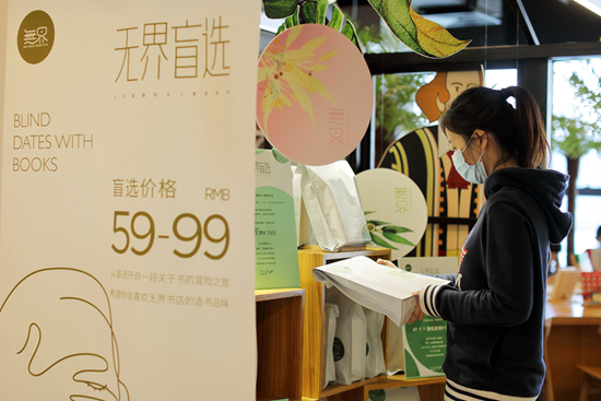 在無(wú)界書(shū)店,女孩KK買了文學(xué)類的盲選:“之前買書(shū)總喜歡看書(shū)店暢銷榜或者朋友推薦,很多都是暢銷書(shū)。這次買的盲選,里面是2本沒(méi)聽(tīng)過(guò)的小說(shuō),有一本已經(jīng)在看了,真的是一邊擦眼淚一邊看,書(shū)中寫的生老病死,投射到生活,讓我無(wú)法不聯(lián)想到自己。”
