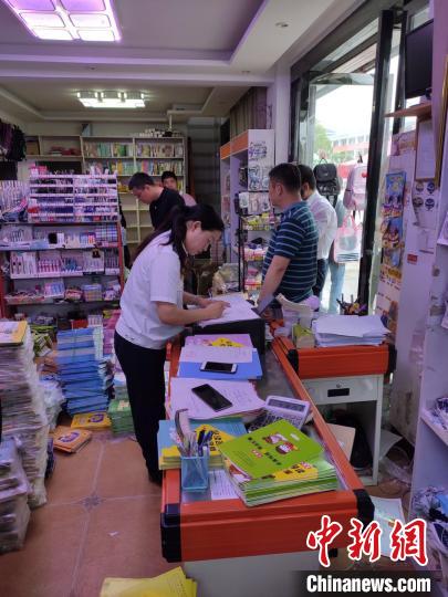 資料圖:江蘇鹽城執(zhí)法人員對(duì)某日用品商店非法銷售盜版少兒類讀物情況開展執(zhí)法檢查 全國(guó)“掃黃打非”辦公室供圖