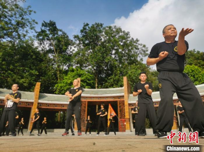 佛山市政府今年印發(fā)了《佛山市加快建設“世界功夫之城”實施方案》,各區(qū)大力推進武術發(fā)展平臺建設,圖為當?shù)靥厣?ldquo;廣場武”。 應妮 攝