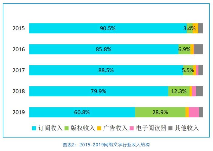 相較于往年,網(wǎng)絡(luò)文學行業(yè)的收入結(jié)構(gòu)則出現(xiàn)變化。