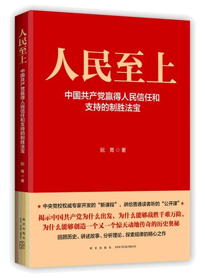 近日,由中共中央黨校(國(guó)家行政學(xué)院)哲學(xué)部馬克思主義哲學(xué)教研室原主任、教授、博士生導(dǎo)師阮青撰寫的新作《人民至上——中國(guó)共產(chǎn)黨贏得人民支持和擁護(hù)的致勝法寶》一書由中國(guó)外文局新星出版社正式出版發(fā)行。