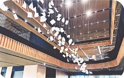 走進(jìn)大廳,英國(guó)藝術(shù)家保羅·考克斯基在挑高大廳創(chuàng)作的公共藝術(shù)作品“陣風(fēng)”映入眼簾。上千本白紙書(shū)頁(yè)隨風(fēng)騰飛的瞬間在空中凝結(jié)下來(lái),象征著閱讀的快樂(lè)與思考,震撼的畫(huà)面宛如置身充滿(mǎn)藝術(shù)氣息的美術(shù)館。