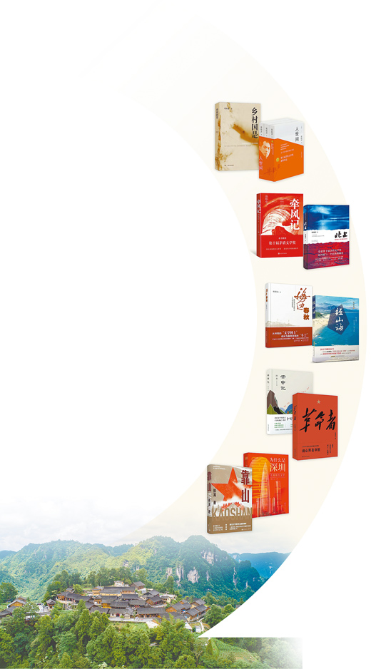 書影圖片從上至下依次為《鄉(xiāng)村國(guó)是》《人世間》《牽風(fēng)記》《北上》《海邊春秋》《經(jīng)山?!贰对浦杏洝贰陡锩摺贰稙槭裁词巧钲凇贰犊可健?。資料圖片