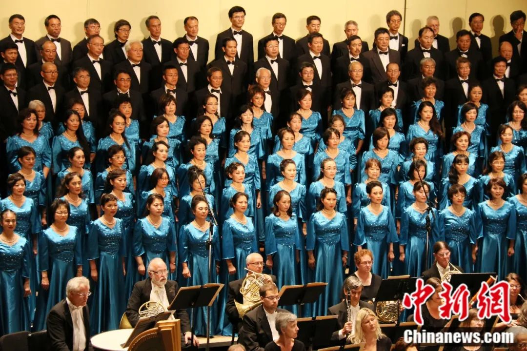 2015年8月,美國(guó)舊金山灣區(qū)華人合唱團(tuán)在硅谷弗林特表演藝術(shù)中心演唱《黃河大合唱》。中新社記者 劉丹 攝