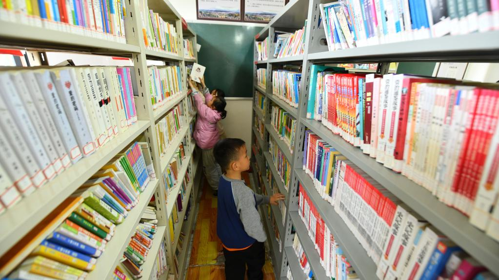 骨龍村小學(xué)學(xué)生在圖書室閱讀(5月25日攝)。
