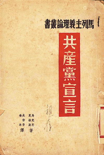 陜北公學(xué)首任校長成仿吾曾在法國和德國學(xué)習(xí)馬克思主義理論,并受中共駐共產(chǎn)國際代表蔡和森委托,翻譯《共產(chǎn)黨宣言》。盡管這部譯稿遺失,卻奠定了他五譯《共產(chǎn)黨宣言》的基礎(chǔ)。人大圖書館收藏了其中3個刊發(fā)本,包括初印版。其中的二譯本,是受中共中央宣傳部委托,在解放區(qū)公開組織翻譯的第一個漢語全譯本。抗戰(zhàn)期間,該譯本是黨員干部的必讀書籍,也是陜北公學(xué)馬列課程的必備教材。