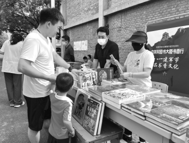 中關(guān)村圖書大廈攜手西郊機(jī)場居民委員會(huì)走進(jìn)西郊機(jī)場家屬區(qū),開展“八一建軍節(jié) 品書香文化”主題宣傳活動(dòng)。