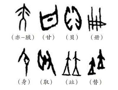 “象形者,畫成其物,隨體詰詘”(《說文·敘》),是根據(jù)客觀物象的形態(tài)輪廓來構(gòu)成文字符號(hào)的方法。象形字又稱作“文”,“文者,物象之本”。如“貝”就是一個(gè)海貝的象形,也指貨幣;“冊”,就是由竹簡編起來的簡冊的象形;“身”為妊娠的形象,突出腹部。