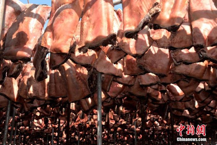 資料圖:隴西臘肉瘦肉燦艷似紅霞,瘦而不柴;肥肉晶瑩若瑪瑙,肥而不膩,微帶透明。 張愛平 攝
