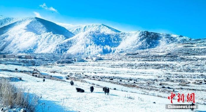 資料圖:初冬時節(jié),蘭州市榆中縣馬坡鄉(xiāng)迎來降雪,一場冬雪過后,村莊田野沐浴在雪景中,藍(lán)天白雪下,似童話世界。張學(xué)江 攝
