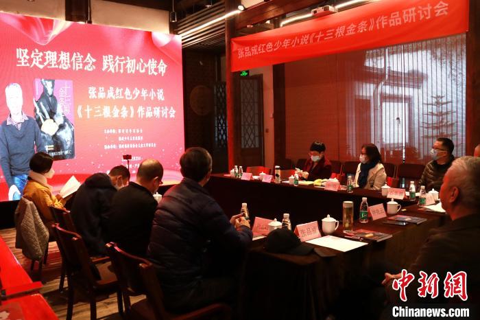 12月23日,張品成紅色少年小說《十三根金條》作品研討會在福州舉行?!「=ㄉ倌陜和霭嫔绻﹫D