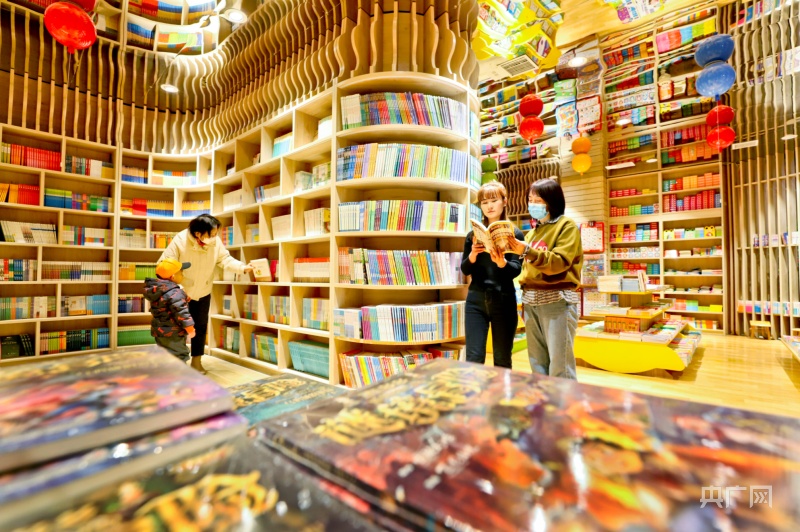 1月23日,市民帶著孩子在甘肅張掖錦華書(shū)城讀書(shū)、選書(shū)、購(gòu)書(shū)。(央廣網(wǎng)發(fā) 王將 攝)