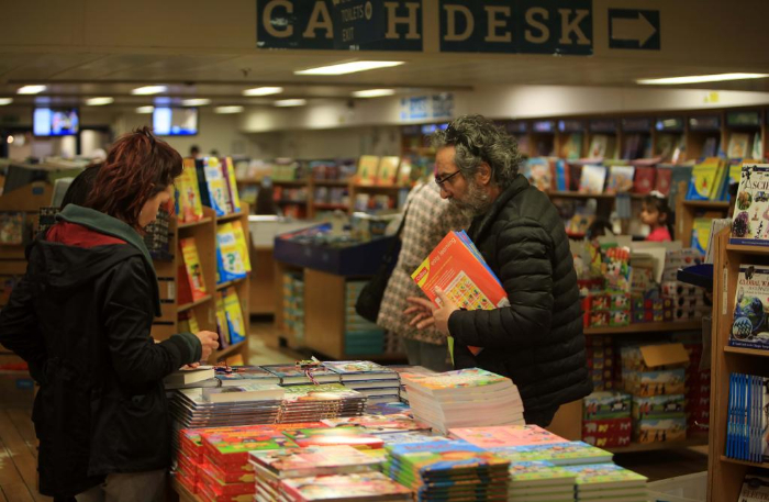 2月13日,在約旦亞喀巴港,人們?cè)?ldquo;望道號(hào)”上挑選書(shū)籍。