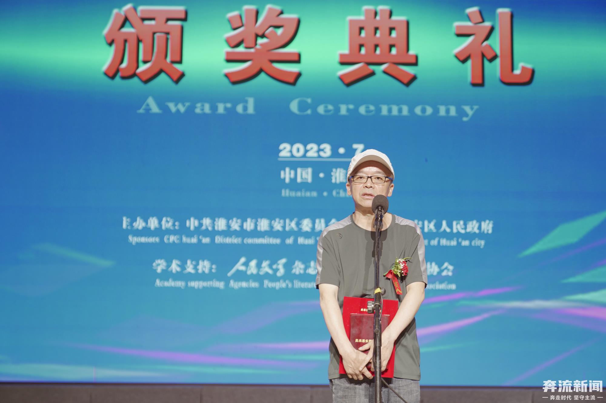 奔流新聞淮安訊(記者師天銘)7月23日,第四屆吳承恩長(zhǎng)篇小說(shuō)獎(jiǎng)?lì)C獎(jiǎng)典禮在江蘇省淮安市淮安區(qū)舉行,著名作家葉舟長(zhǎng)篇小說(shuō)《涼州十八拍》獲獎(jiǎng)。中國(guó)作家協(xié)會(huì)黨組成員、副主席、書記處書記吳義勤,中國(guó)作協(xié)黨組成員、書記處書記、《人民文學(xué)》雜志社主編施戰(zhàn)軍及本屆獲獎(jiǎng)作家等出席頒獎(jiǎng)典禮。