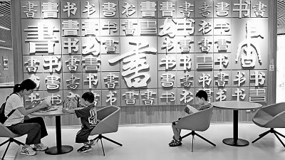 7月24日,家長(zhǎng)帶孩子在位于呼和浩特市的內(nèi)蒙古新華書店內(nèi)閱讀書籍。丁根厚攝/光明圖片