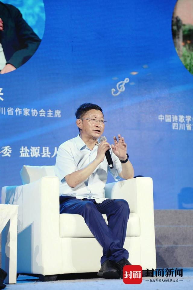 現(xiàn)場,阿來、陳智林與龔學敏就“詩歌創(chuàng)作如何與音樂結合”“詩歌如何賦能鹽源縣文旅發(fā)展”“如何打造四川特色的文化事業(yè)和文化產(chǎn)業(yè)”等議題展開了對話,深入探討鹽源的詩與遠方。