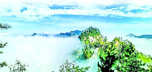 然而,天水石門山的饋贈(zèng)還不止這些。由于石門山地理位置特殊,宜人的氣候經(jīng)常會(huì)造就氣勢(shì)磅礴的浩瀚云海。云海平靜時(shí),云霧便在半山腰停住腳步。站在山巔遠(yuǎn)眺,只見腳底下半山腰白霧團(tuán)團(tuán),感覺自己在云山之巔,飄飄欲仙。“不知天上宮闕,今夕是何年?”此情此景,比畫更有靈氣,比詩(shī)更具意境。置身其中,感覺空氣都被浸潤(rùn)得芳香四溢,令人心曠神怡。