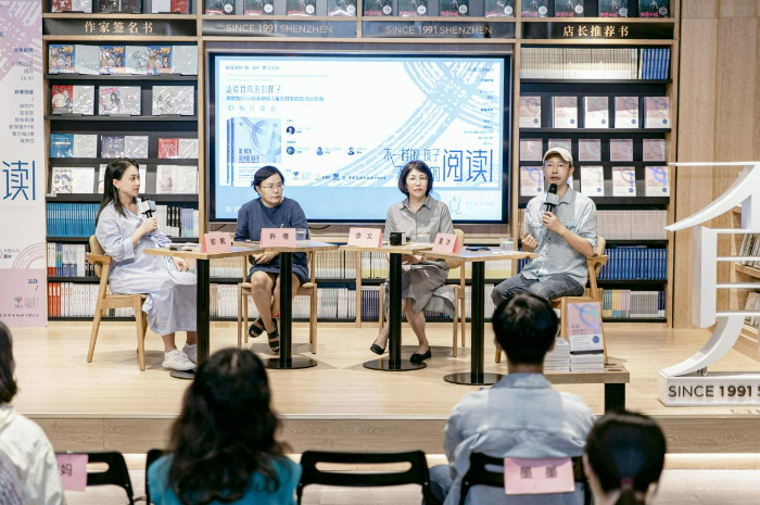分享會上,閱讀公益組織“愛閱公益基金會”的李文、兒童有聲書品牌“老墨家族”的“墨叔叔”、學習困難關愛協(xié)會“學愛會”許倩、讀困家長社群“飛米力”(本書翻譯團隊)主理人鄭楓,四位嘉賓,帶著各自不同的成長和行業(yè)經(jīng)歷背景,圍繞“不一樣的孩子,不一樣的閱讀”的主題展開交流,從不同的角度表達了他們對于閱讀障礙的關切。