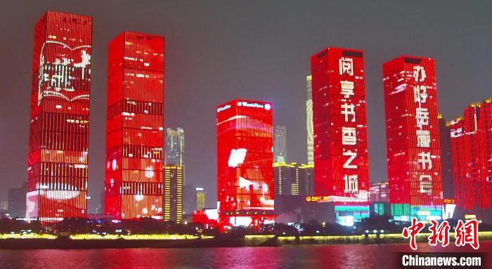 長(zhǎng)沙湘江兩岸同步上演的岳麓書會(huì)主題燈光秀。主辦方供圖