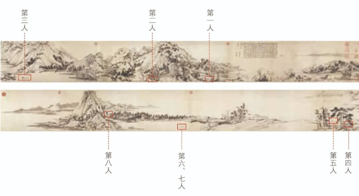 說第九位人物之前,我們先來看看上圖展示的已經(jīng)形成共識(shí)的八位人物。從形象上看,這八位人物大概為高士、樵夫和漁父。詳細(xì)解讀這八位人物之前,我們不妨先一起找尋一下隱藏的第九位神秘人物。
