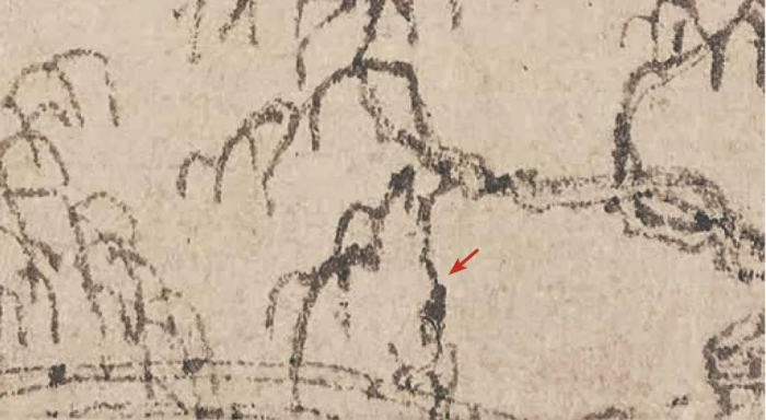 第三,橋樁部分被徹底燒毀。這是因?yàn)楫?dāng)年吳洪?;鹧钞嬀頃r(shí),畫作最下面一部分可能燒毀了,這個(gè)橋樁在重新裝裱時(shí)估計(jì)不得不被裁剪掉了。