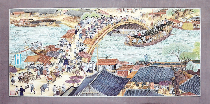 《清明上河圖》大量采用硬撥、浮 雕 撥、剪貼、柳繡、抽絲、繪畫、打籽繡、編織等工藝。