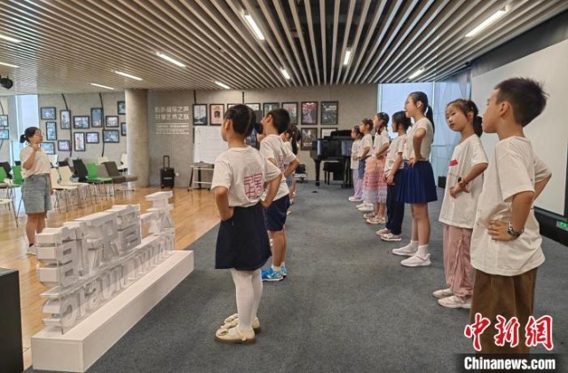 寧波圖書館的“天一童藝”公益項目現(xiàn)場,孩子們跟著老師學(xué)唱由《千字文》改編的歌曲?!≈行戮W(wǎng)記者 應(yīng)妮 攝