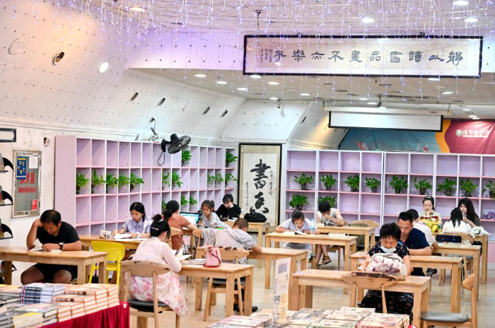連日來(lái),福建省福州市持續(xù)高溫,市區(qū)各圖書館、圖書商城成為市民消暑讀書好去處。