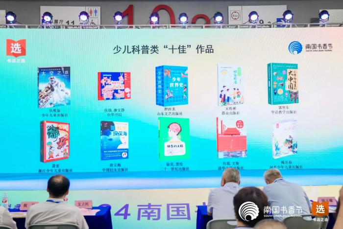 活動現(xiàn)場,嘉賓依次揭曉五大類“十佳”作品入選名單。今年入選的50部作品,延續(xù)了往屆“十佳”作品品質(zhì)閱讀要求,緊貼時勢,包羅萬象,不乏“新質(zhì)生產(chǎn)力”等熱點話題。同時,我們也很欣喜的看到,在兒童文學(xué)、少兒科普領(lǐng)域,涌現(xiàn)出不少新生代原創(chuàng)作者。