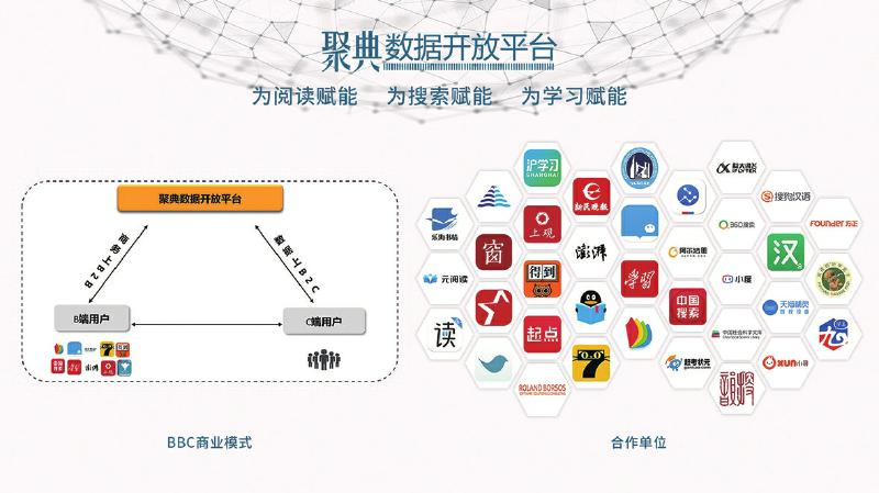 以我為主,推動產(chǎn)業(yè)鏈和生態(tài)圈的協(xié)同共進。與以往數(shù)字出版平臺大都采用B2B、B2C等商業(yè)模式不同,聚典平臺采取的是BBC運營模式,即在商務(wù)流上是B2B模式,而在數(shù)據(jù)流上是B2C模式。該模式很好地解決了用戶在數(shù)字閱讀過程中的痛點,同時又很好地平衡了各方利益,C端用戶無需付費便可享受聚典平臺的優(yōu)質(zhì)內(nèi)容資源服務(wù),B端客戶向平臺付費以獲得增值服務(wù),在增加其產(chǎn)品用戶黏性的同時,也減輕了自身的數(shù)據(jù)加工和技術(shù)開發(fā)工作。聚典平臺不僅在總體上創(chuàng)造出增量價值,更通過制度的設(shè)計很好地平衡了增量價值的合理分配,讓各方都分享到其中的一部分,從而調(diào)動了各方的參與性和積極性。
