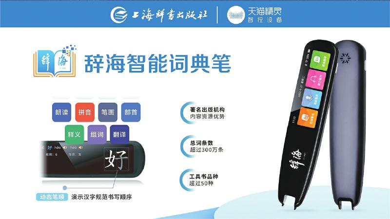 為了更好地適應(yīng)用戶在紙質(zhì)閱讀過程中的快速查檢需求,辭書社經(jīng)過數(shù)年設(shè)計研發(fā),于2022年9月推出辭海智能詞典筆。詞典筆充分依托聚典平臺積累的海量內(nèi)容資源,將1.6億字裝進一支詞典筆,內(nèi)置詞條達到了300余萬條,收錄了《辭?!罚ǖ谄甙妫┖汀洞筠o?!贰稘h語大詞典》《英漢大詞典》《世紀漢英大詞典》等國家級標志性工具書,整合《現(xiàn)代漢語大詞典》《現(xiàn)代漢語規(guī)范詞典》《中國成語大辭典》《同義詞、反義詞大詞典》等精品工具書,讓用戶每次都能夠查有所得。同時,詞典筆實現(xiàn)掃讀結(jié)果1秒呈現(xiàn),并融合數(shù)字智能技術(shù),集掃描查詢、語音助手、聽力練習(xí)、語音翻譯、口語測評、數(shù)碼錄音、生詞本、文本摘抄等八大功能于一體,實現(xiàn)一筆多用。