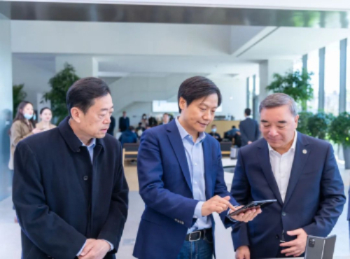 張宇偉(左一)和宋志平(右一)一起到小米集團(tuán)調(diào)研。